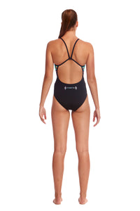 Single strap one piece with strappy V shaped back. Excellent durability and freedom of movement with single bind finish and an open back that will flatter your sporty shape. With full front lining, this is the perfect style for those long hours of training in the pool. Available in sizes 6 - 16.