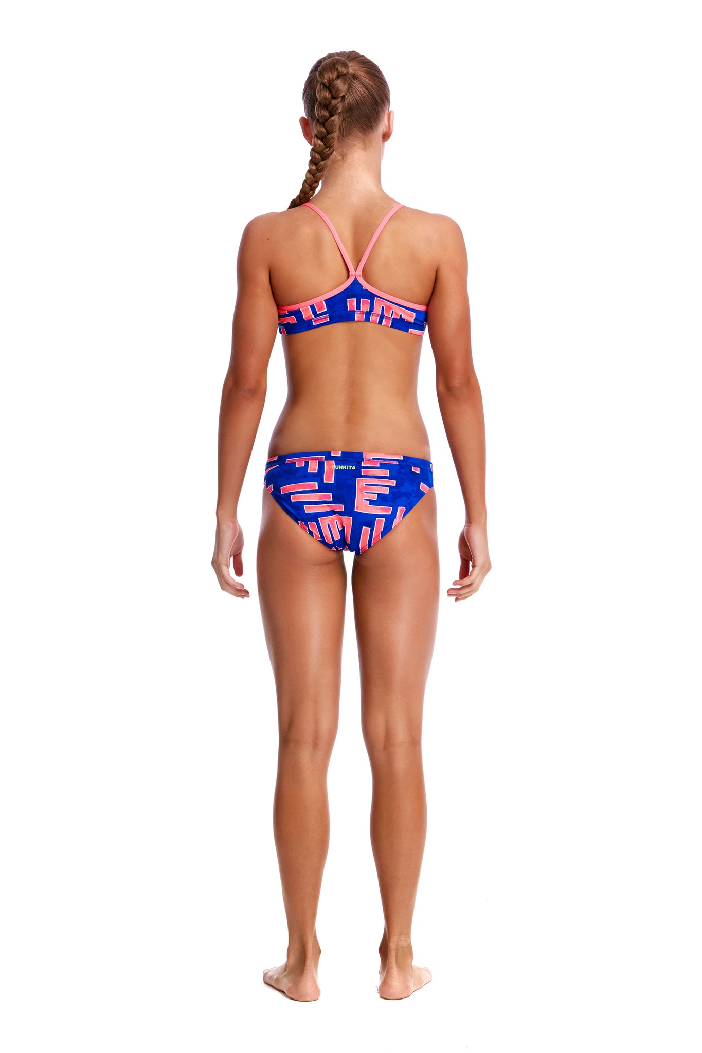 A firm fitting crop top and hipster brief suited to the sporty girl. It’s a secure fit with underbust and waist elastic and drawcord in the brief. Features a single shoulder bind strap finish. Available in sizes 8 - 14.