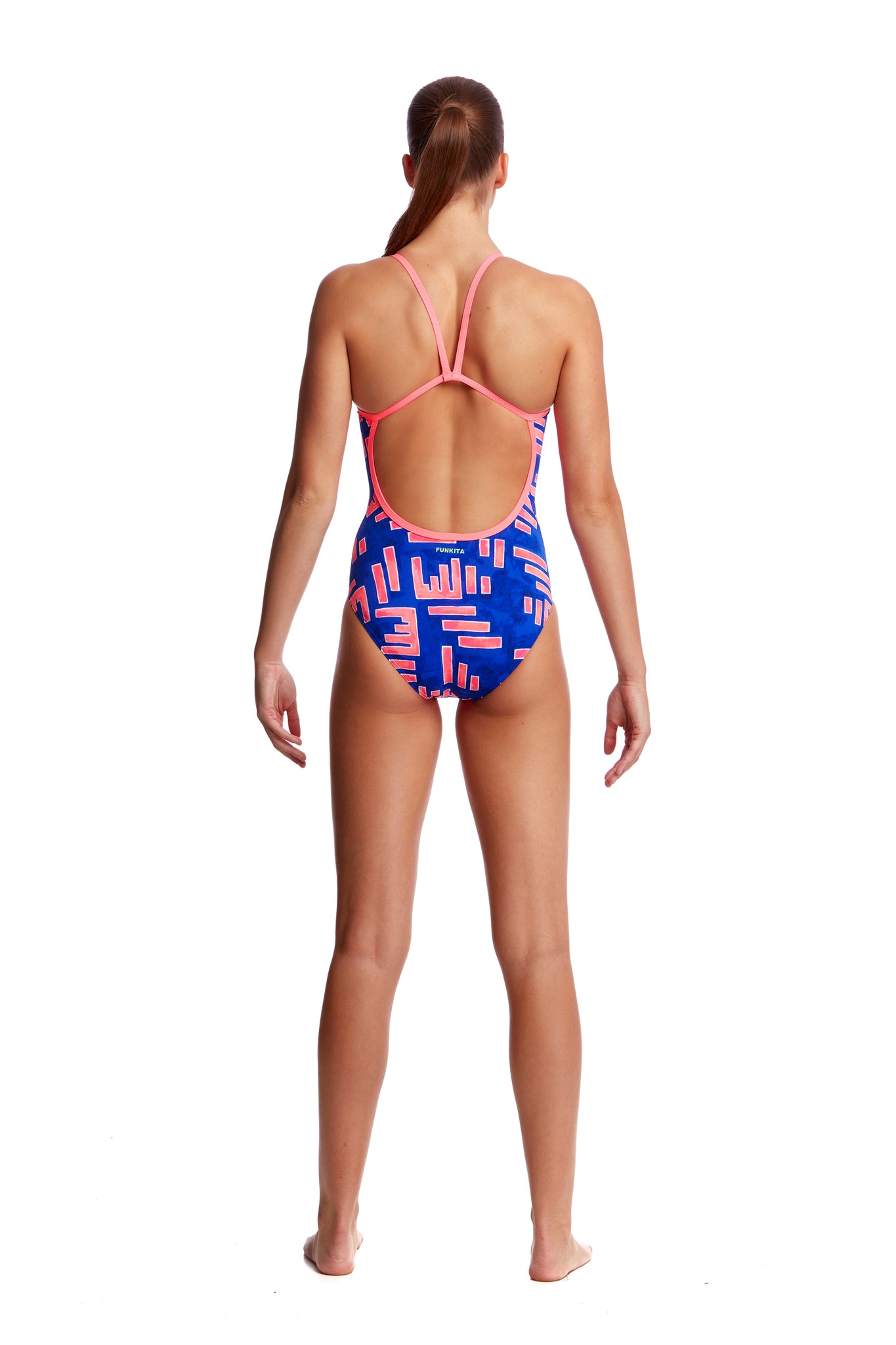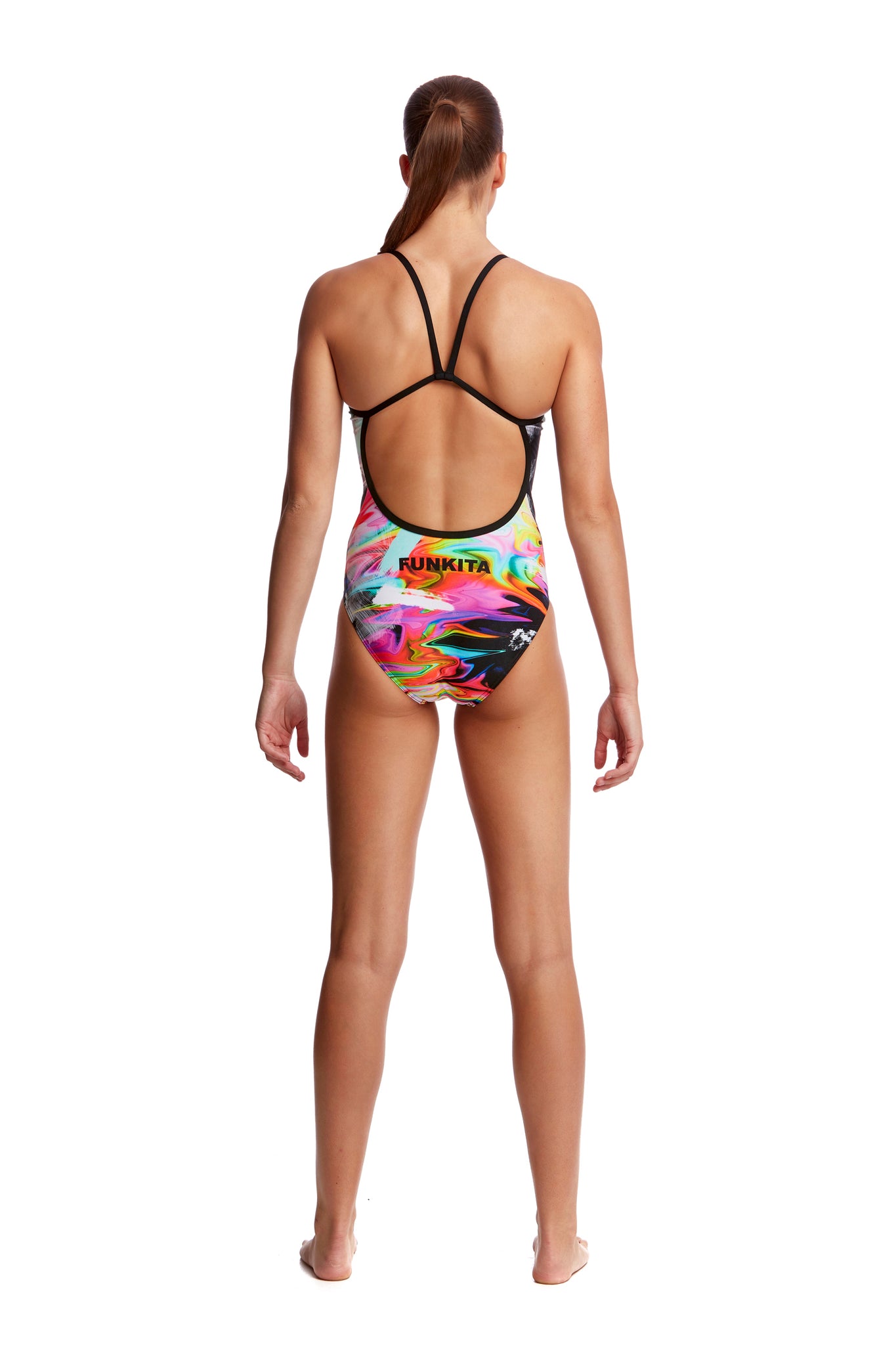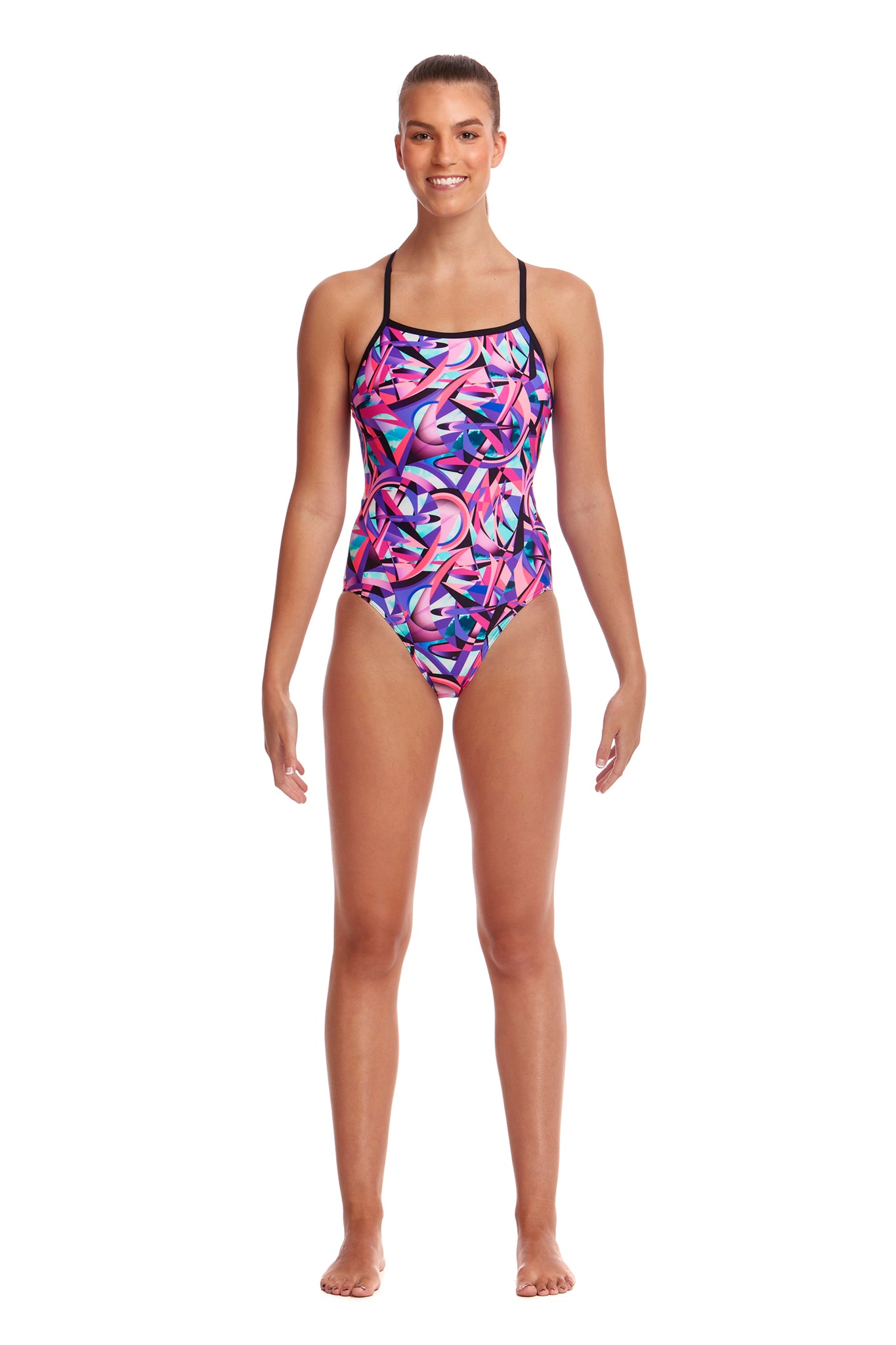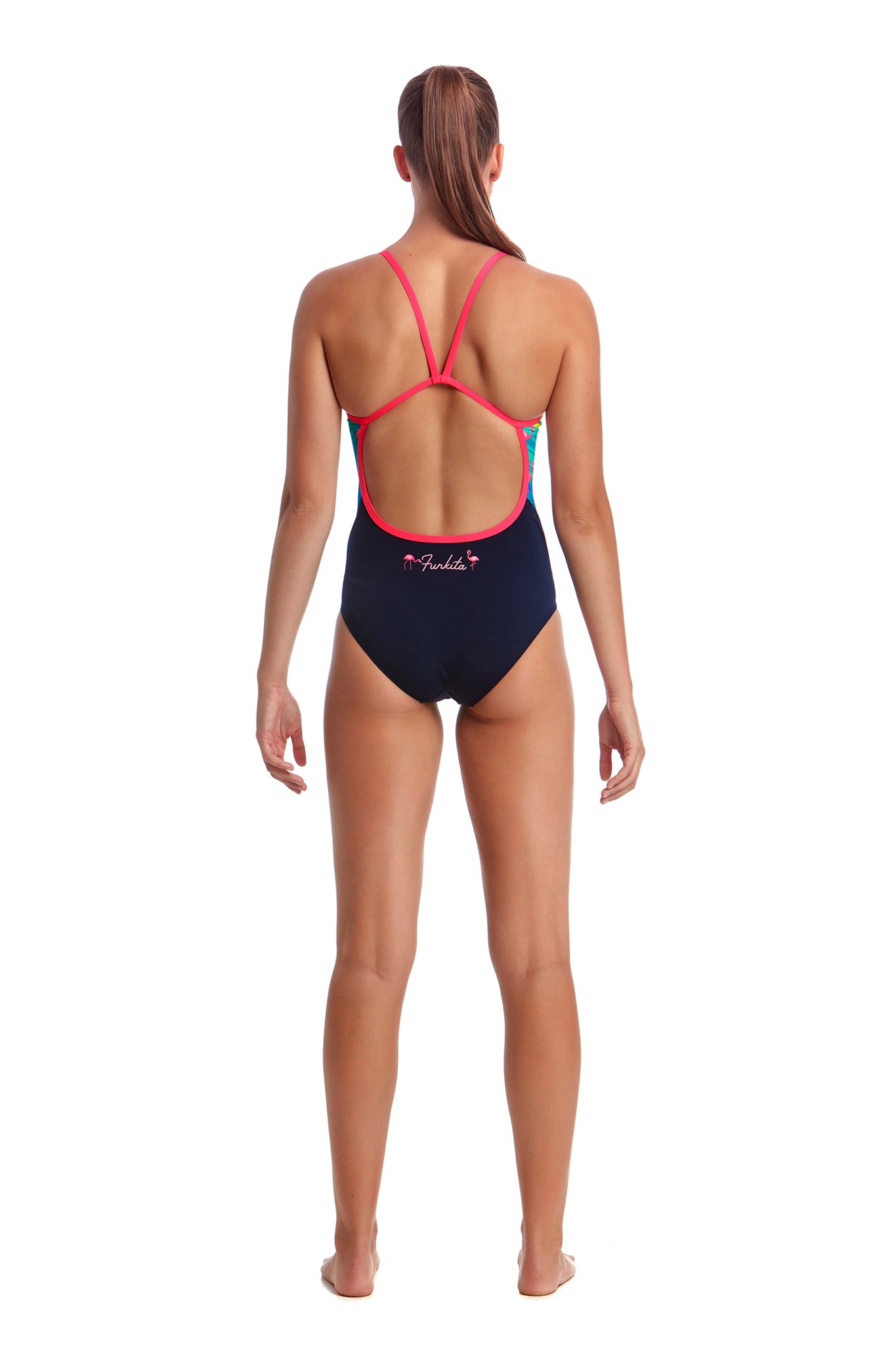 Single strap one piece with strappy V shaped back. Excellent durability and freedom of movement with single bind finish and an open back that will flatter your sporty shape. With full front lining, this is the perfect style for those long hours of training in the pool. Available in sizes 6 - 16.