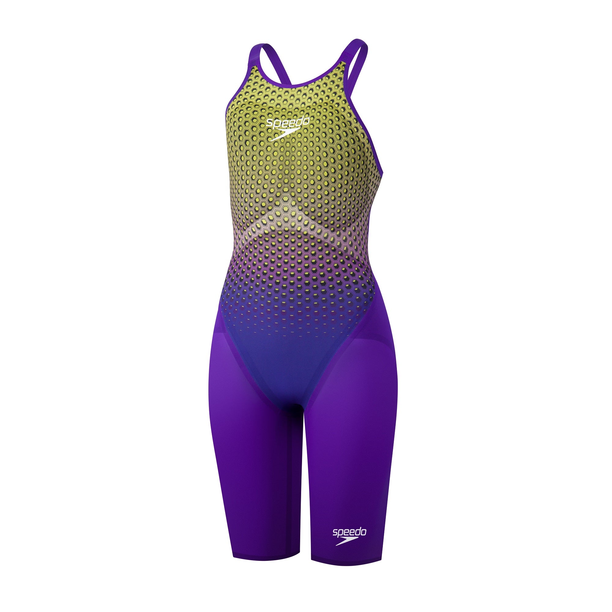 Feel unstoppable wearing Speedo's latest innovation developed by swimmers for swimmers. The Fastskin LZR Pure Valor Openback Kneeskin in Venomous Violet colour is made from lightweight material and features moderate compression and construction designed to support a greater range of movement. Dual layering around the abs offers greater core stability so you get the best out of your swim. The open back offers freedom of movement and may be preferred by swimmers with arched backs. This product has been fully approved by FINA.